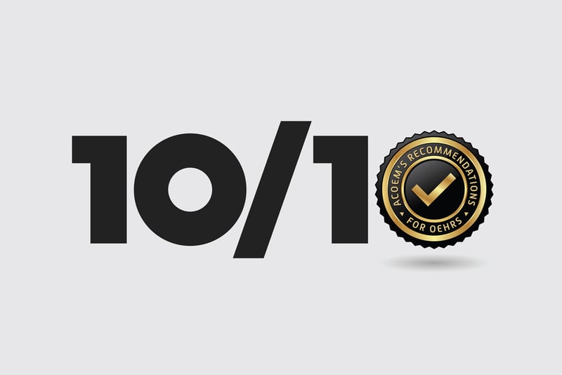 Ours is the only solution that combines occ health and compliance, employee engagement and a certified EHR on a single, interoperable system. And the only system that checks 10 out of 10 boxes on the new ACOEM recommendations for selecting an OEHR.